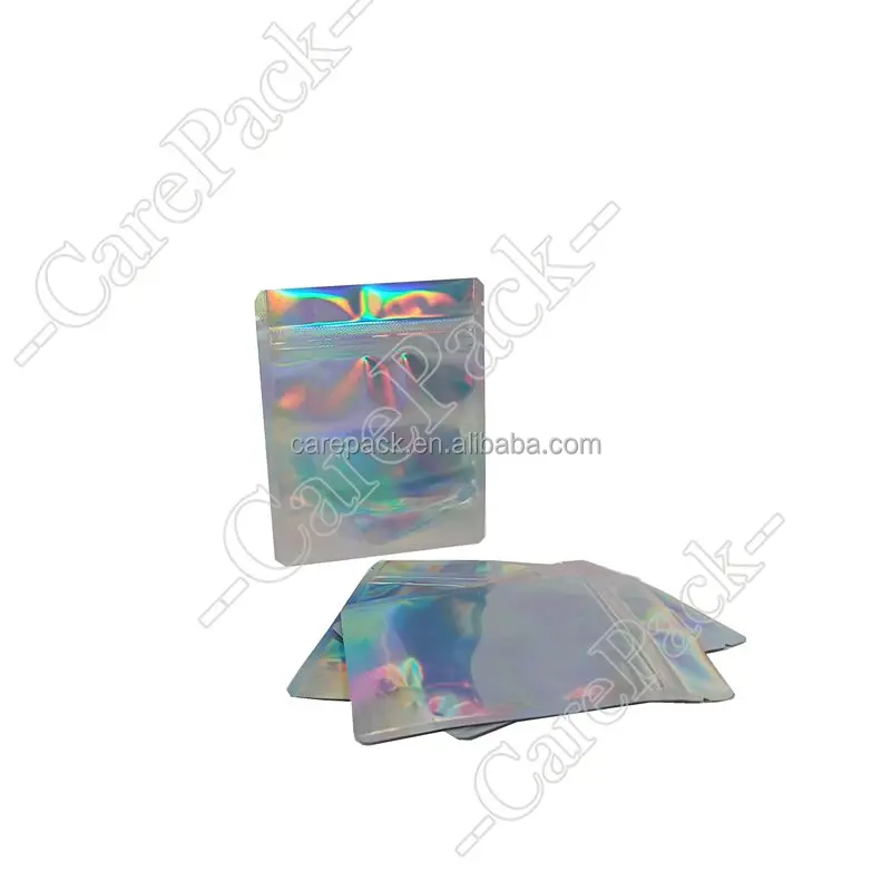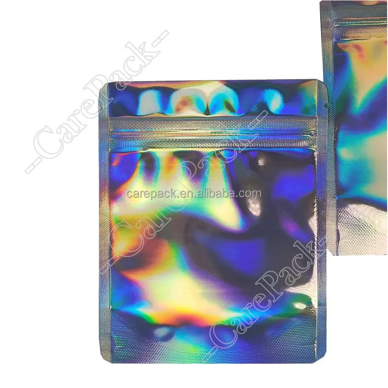 10x15 cm rainbow iridescent hologram holographic stand up packaging ziplock Smell Proof Food Storage Mylar Zipper Bags