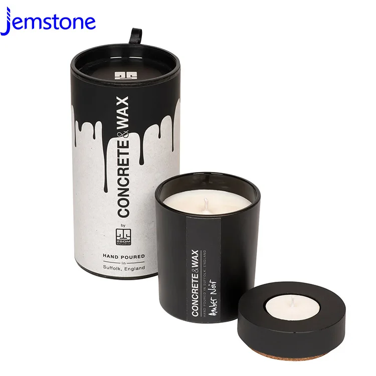 Black Cardboard Holder Round Paper Tube for Perfume Bottle Packaging Candle Jar With Lids and Package