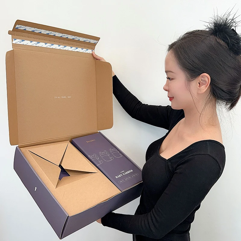 Corrugated Paper Skincare Packaging Adhesive Tear Strip Self Sealing Mailer Shipping Gift Box With Custom Logo