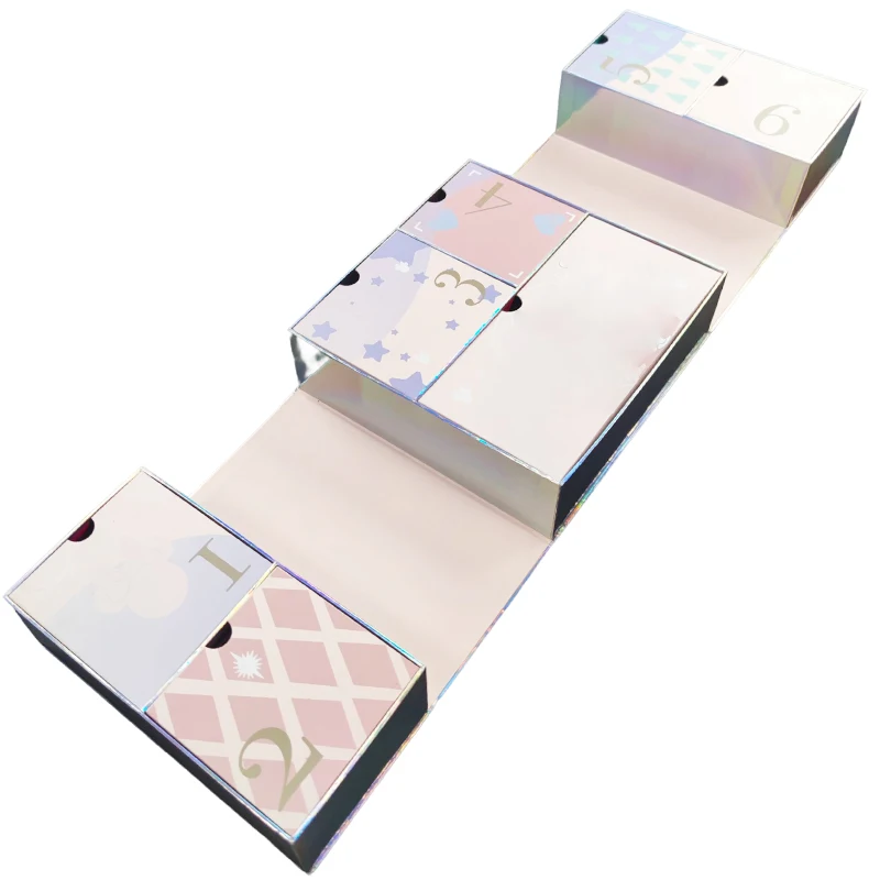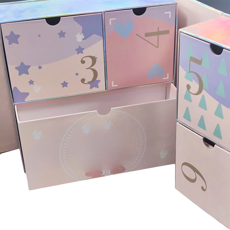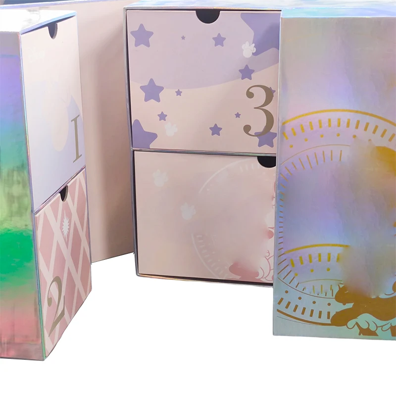 Custom low moq 25 days / 12 days beauty cosmetic storage large drawers cardboard christmas gift advent calendar packaging boxes