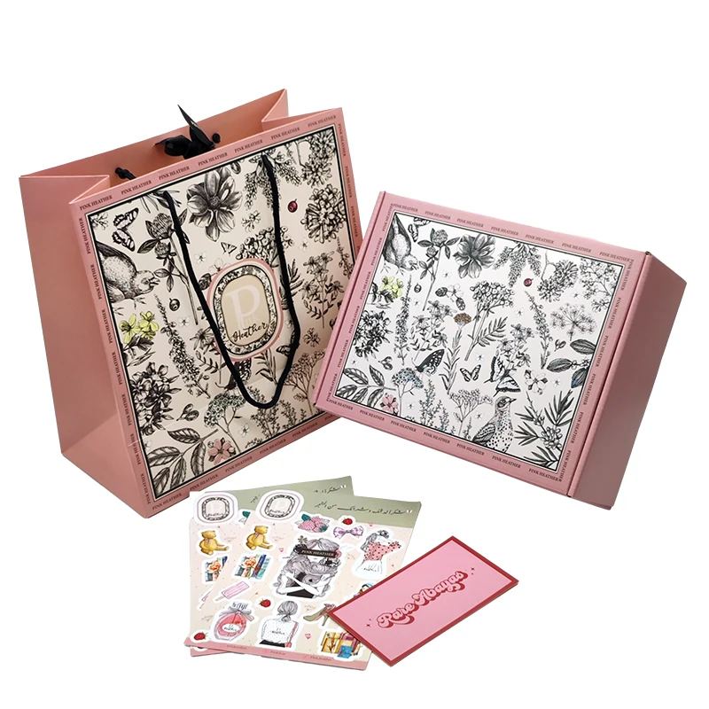 paper box + paper bag + tissue papper + mailer bag + stick label + paper card