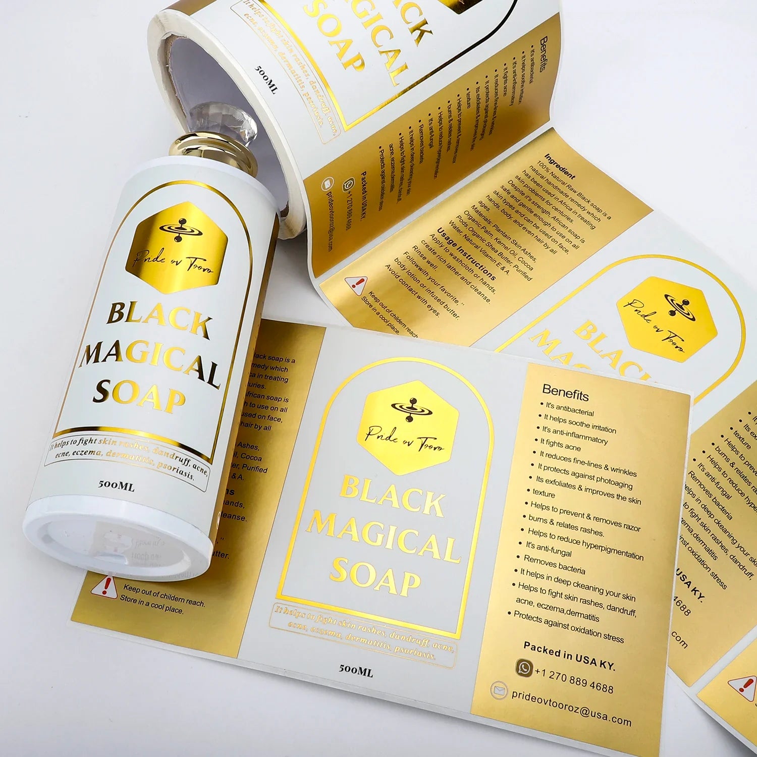 Custom Printing Waterproof Vinyl Luxury Cosmetic Skincare logo Gold Foil Sticker Perfume Bottle Label Roll for Jar Packaging