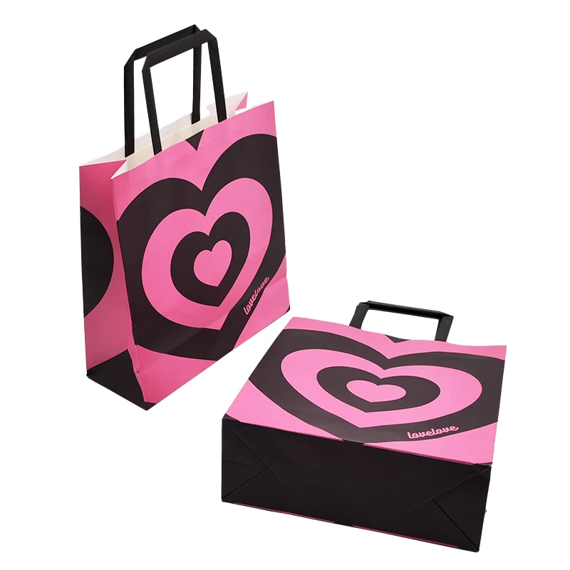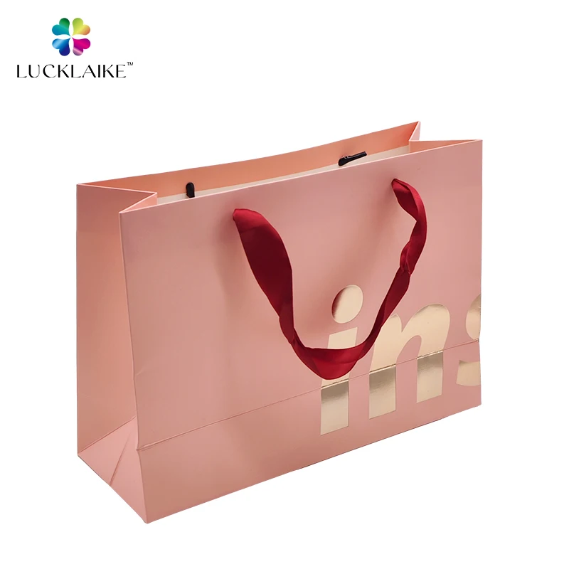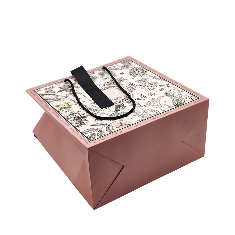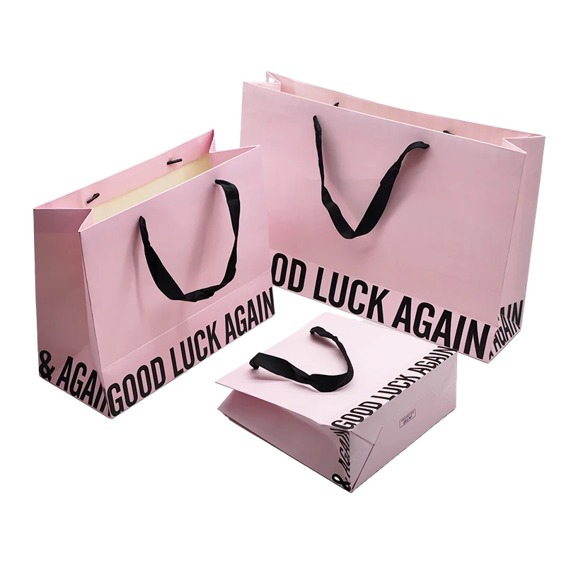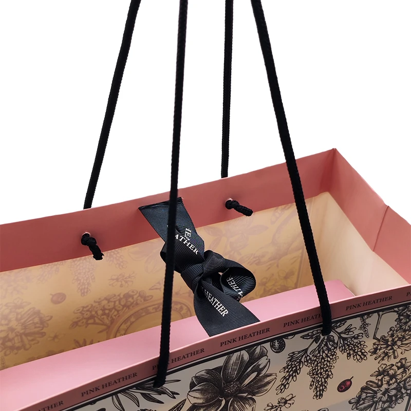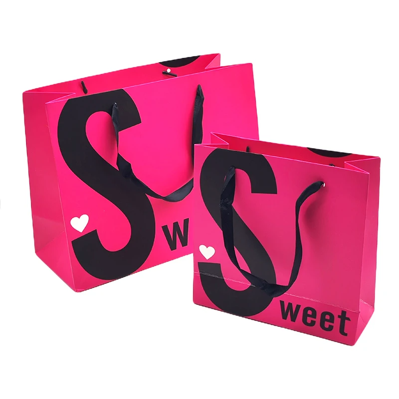 Custom eco-friendly luxury sublimation stand up shopping packaging gift party pink paper bag with logo