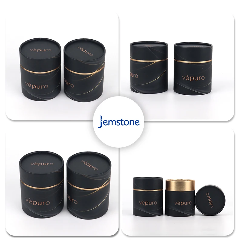 Custom Eco-Friendly Round Black Kraft Candle Cardboard Tube Box Food Tea Coffee Cylinder Packaging Cosmetic Perfume Paper Tube
