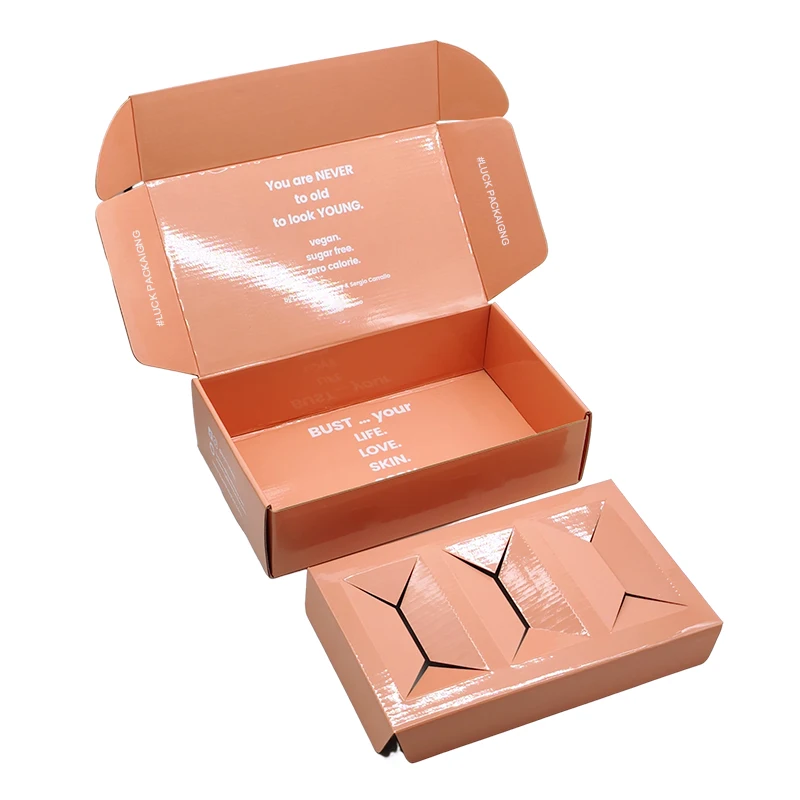 Custom Embossed Logo Corrugated Skincare Cosmetic Bottle Paper Mailer Boxes Packaging Cardboard Shipping Box With Logo Insert