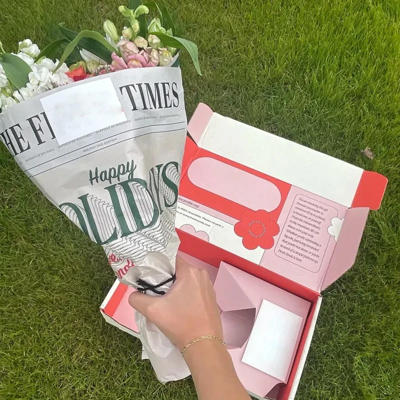 Custom Flower Boxes Matte Double-Sided Printed Paper Box for Valentine's Day Bouquet Gift Packaging Durable Carton Gift Box