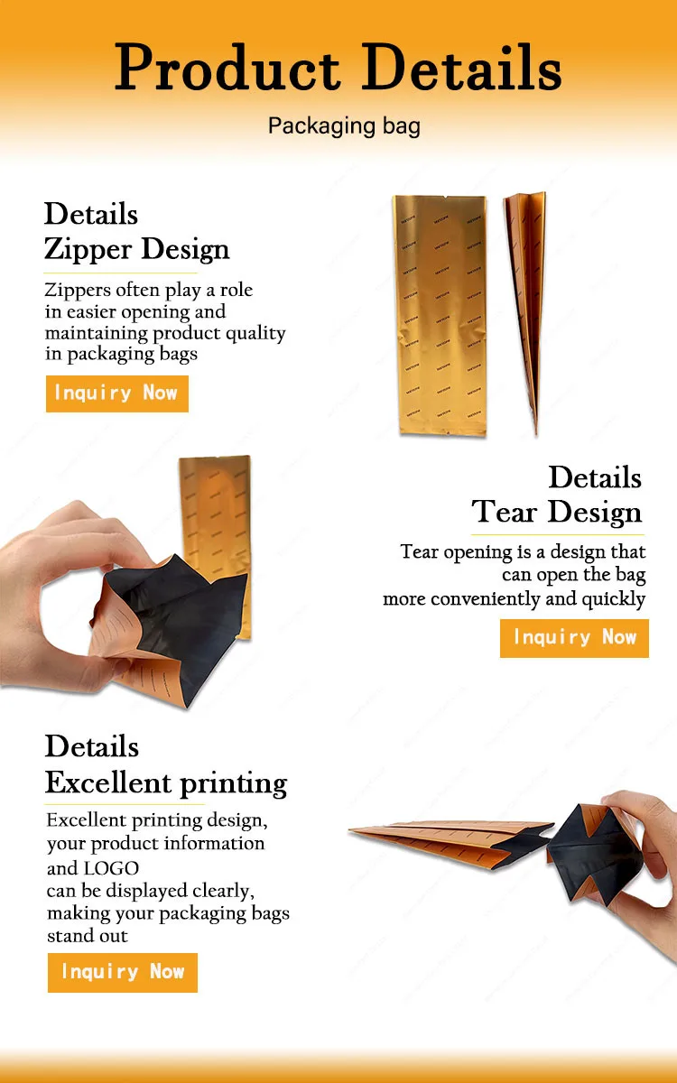 1. Glossy: PET/VMPET/PE, PET/AL/PE, OPP/AL/CPP, OPP/VMPET/CPP, PET/PE 2. Matt: MOPP/VMPET/PE, MOPP/PE, NY/PE, NY/CPP 3. Plastic Materials 4. Food grade material or customized |