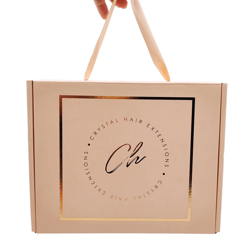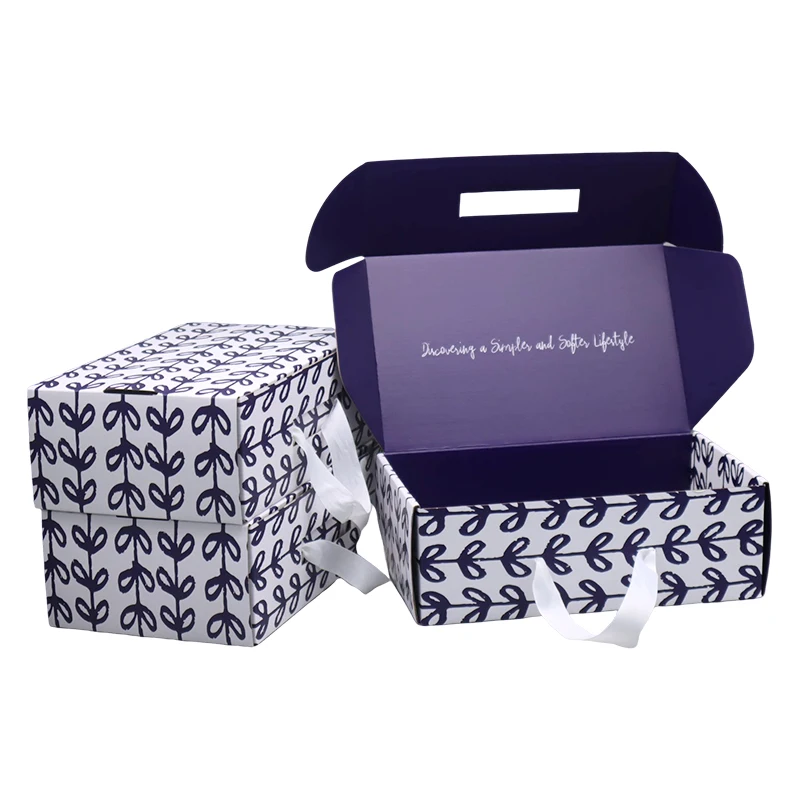 Custom logo corrugated paper box wedding bundles dressing gift mailer delivery mailing boxes for clothing with ribbon handle