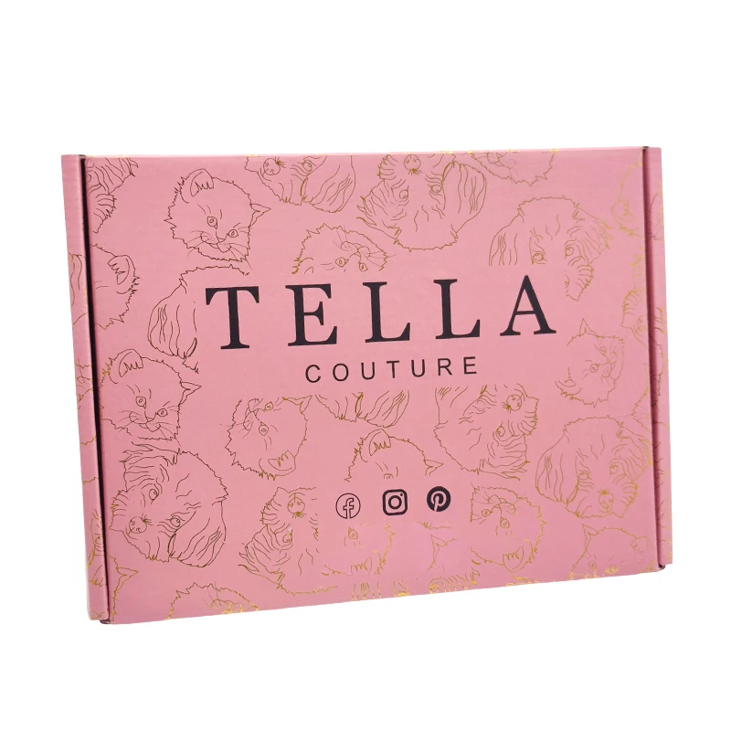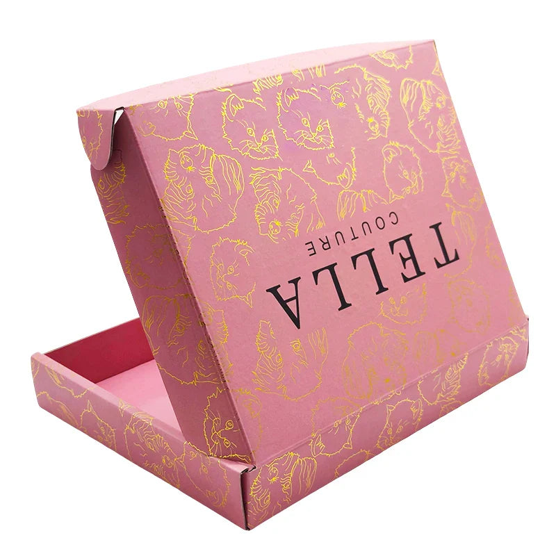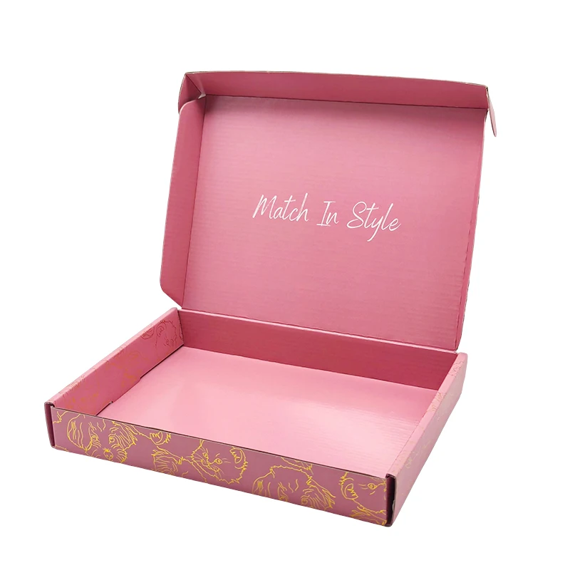 Custom Luxury Clothing Recycled Emballage Carton Gold Foil Logo Full Printing Box Postal Shipping Packaging Pink Paper Boxes