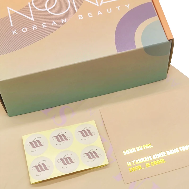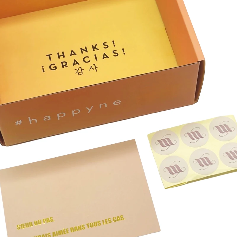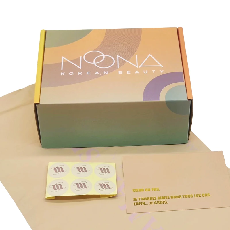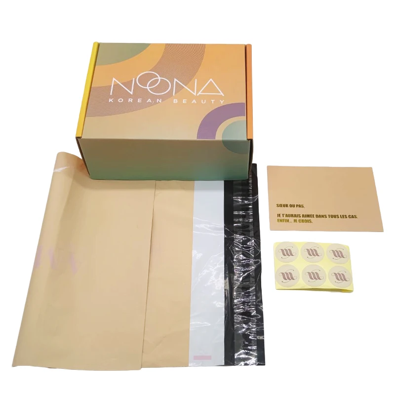paper box + paper bag + tissue papper + mailer bag + stick label + paper card