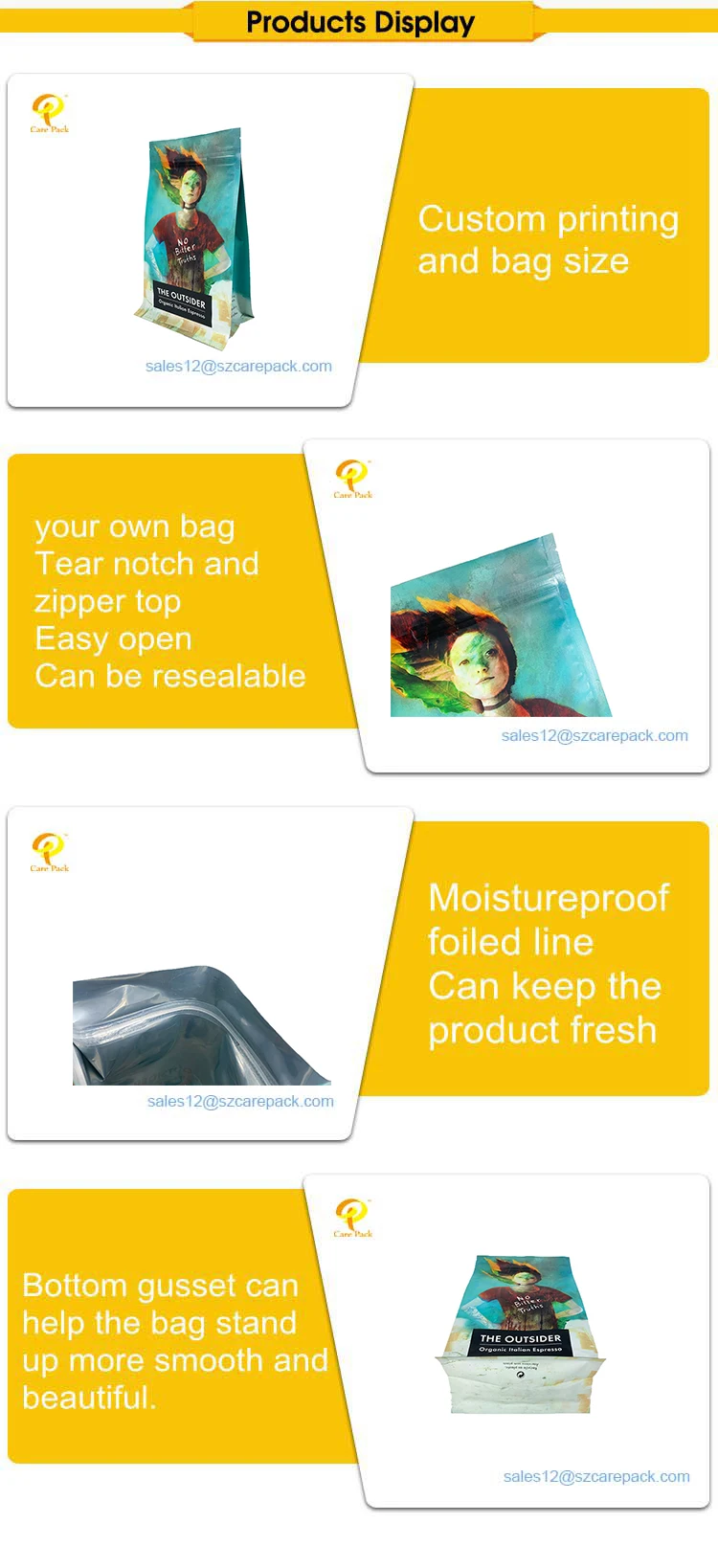 1. Glossy: PET/VMPET/PE, PET/AL/PE, OPP/AL/CPP, OPP/VMPET/CPP, PET/PE 2. Matt: MOPP/VMPET/PE, MOPP/PE, NY/PE, NY/CPP 3. Kraft paper 4. Food grade material or customized |