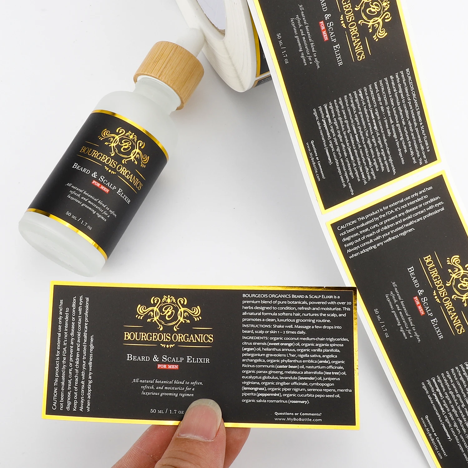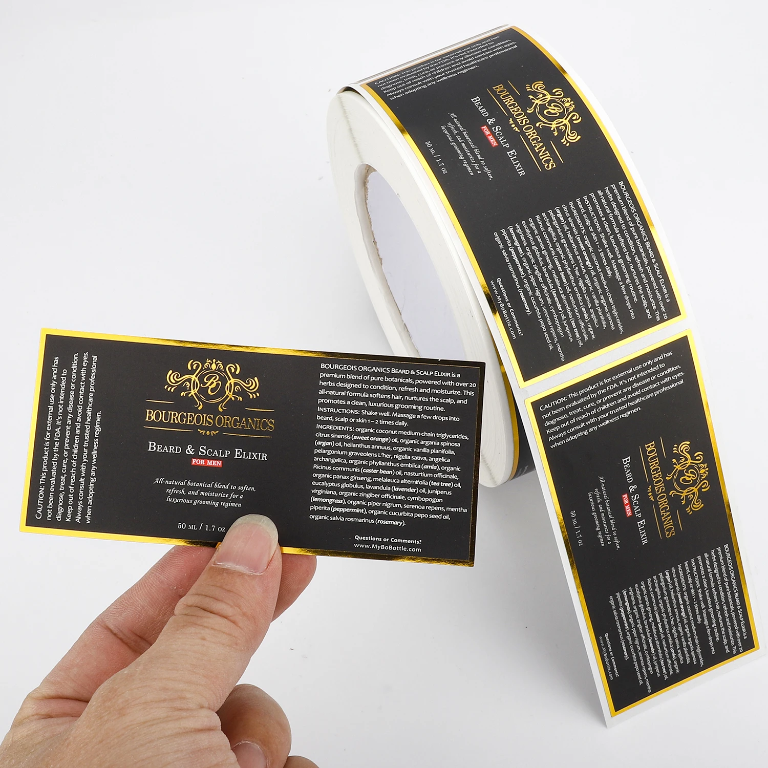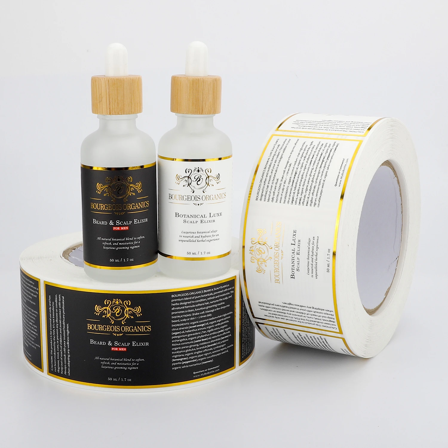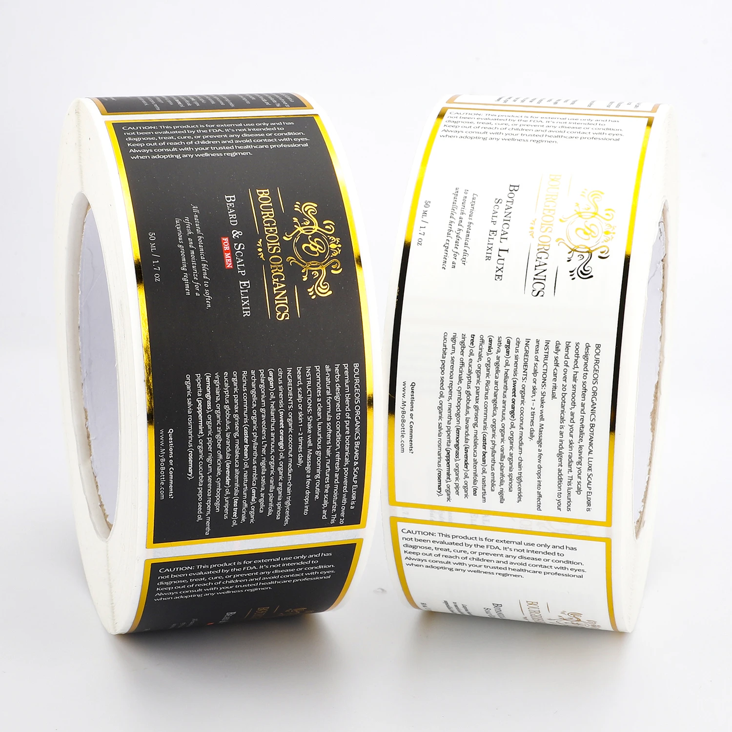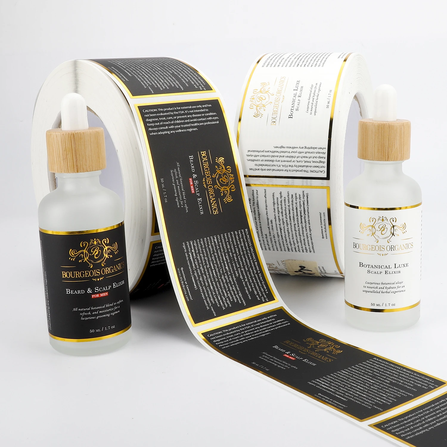 Custom Printed Gold Foil Labels Roll and Logo Hot Stamping Waterproof Embossed Stickers for Cosmetic Bottle Packaging