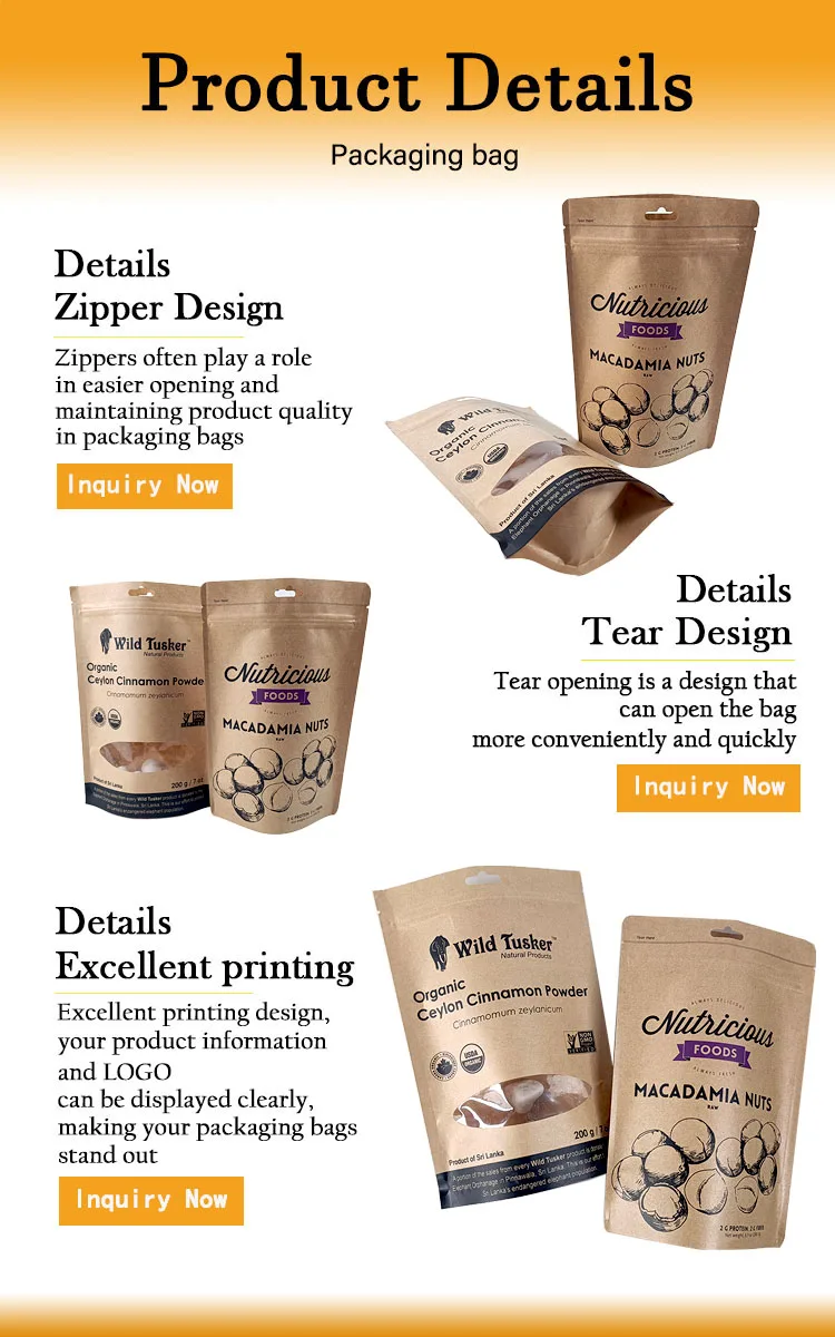 Custom Recycle Craft Tea Snack Coffee Stand Up Pouches Biodegradable Eco-friendly Doypack Kraft Bags With Your Own Logo