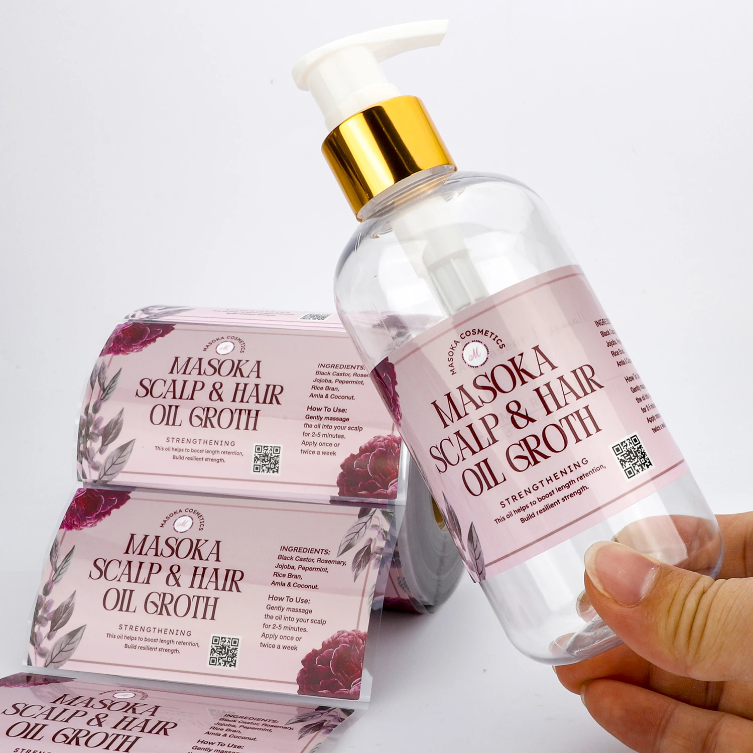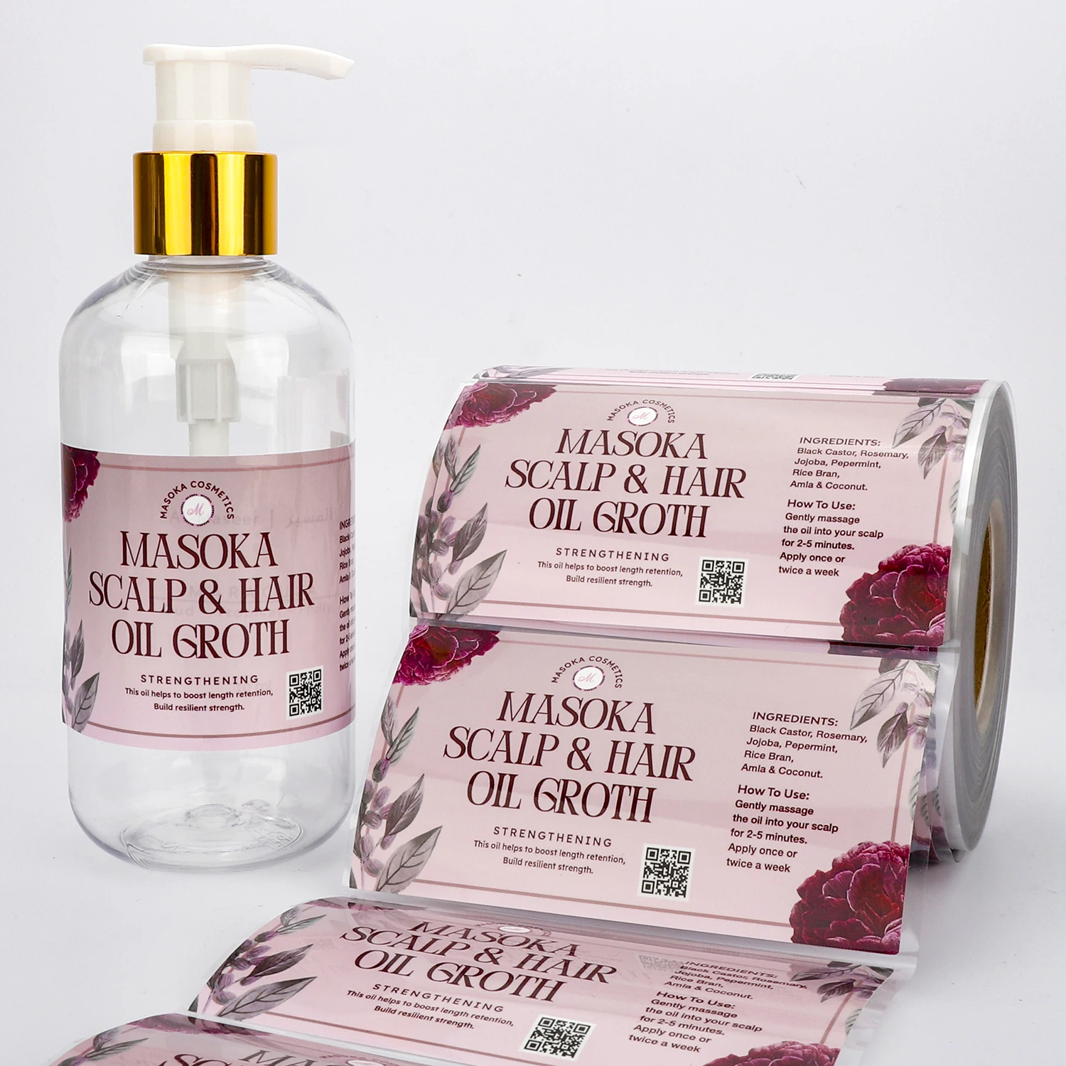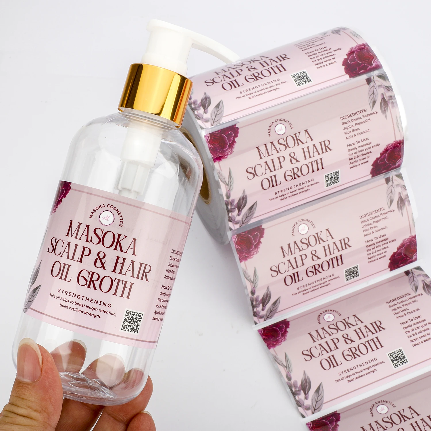 Customized Gold Foil Logo Printing Waterproof Adhesive Vinyl 100ml Hair Growth Oil Roll Sticker Labels For Hair Oil Bottles