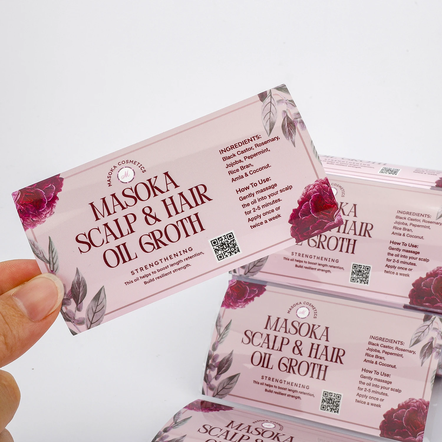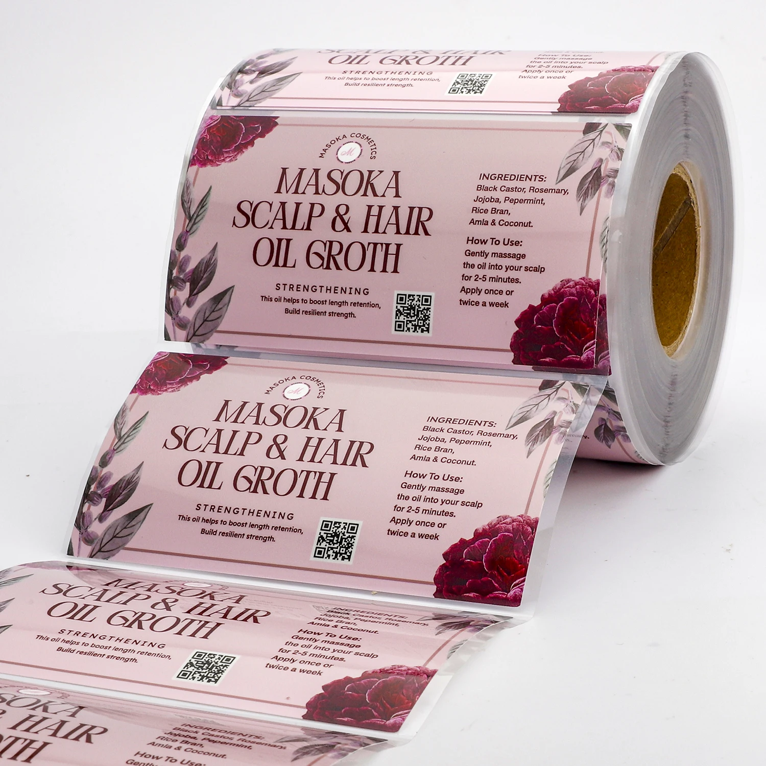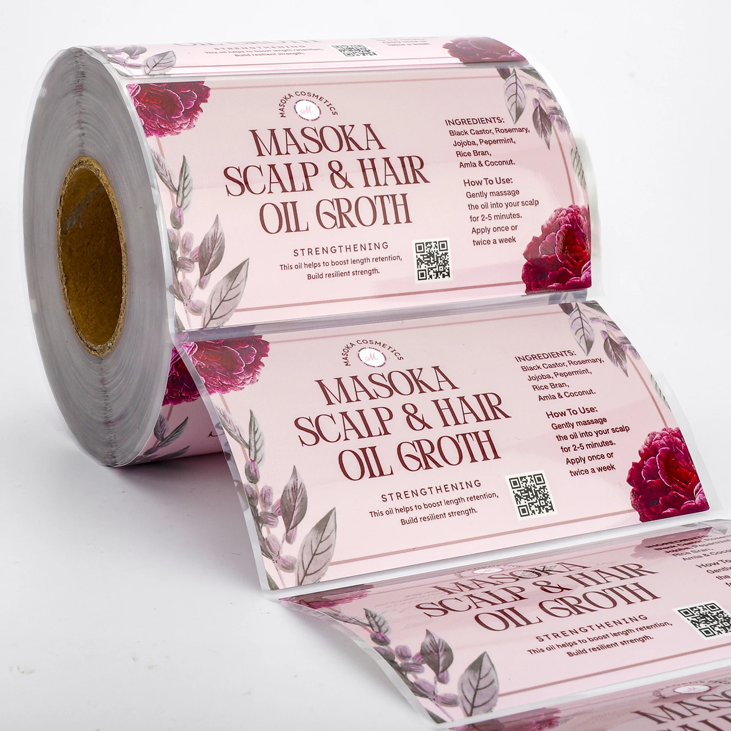 Customized Gold Foil Logo Printing Waterproof Adhesive Vinyl 100ml Hair Growth Oil Roll Sticker Labels For Hair Oil Bottles