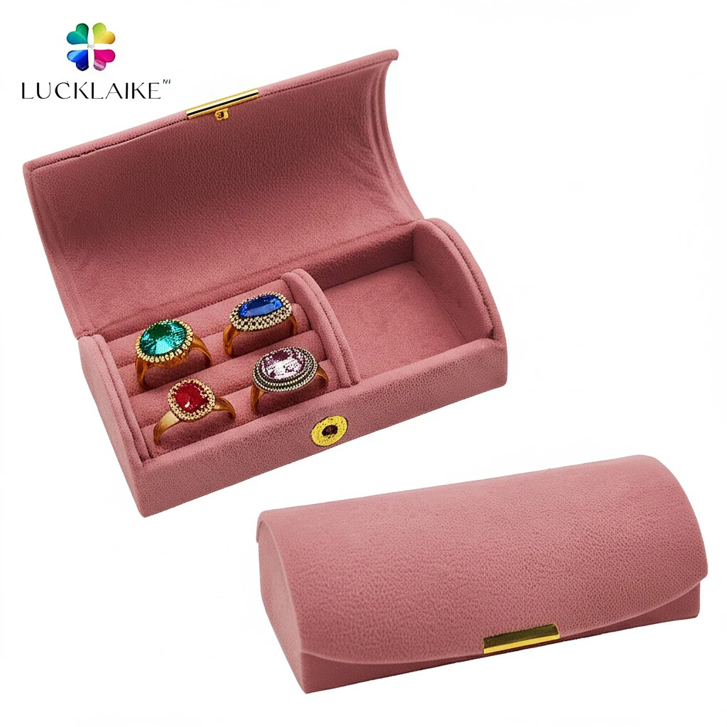 Customized Luxury Personalized Vintage Display Ring Small Pink Jewelry Set Paper Gift Packaging Velvet Jewelry Box with logo