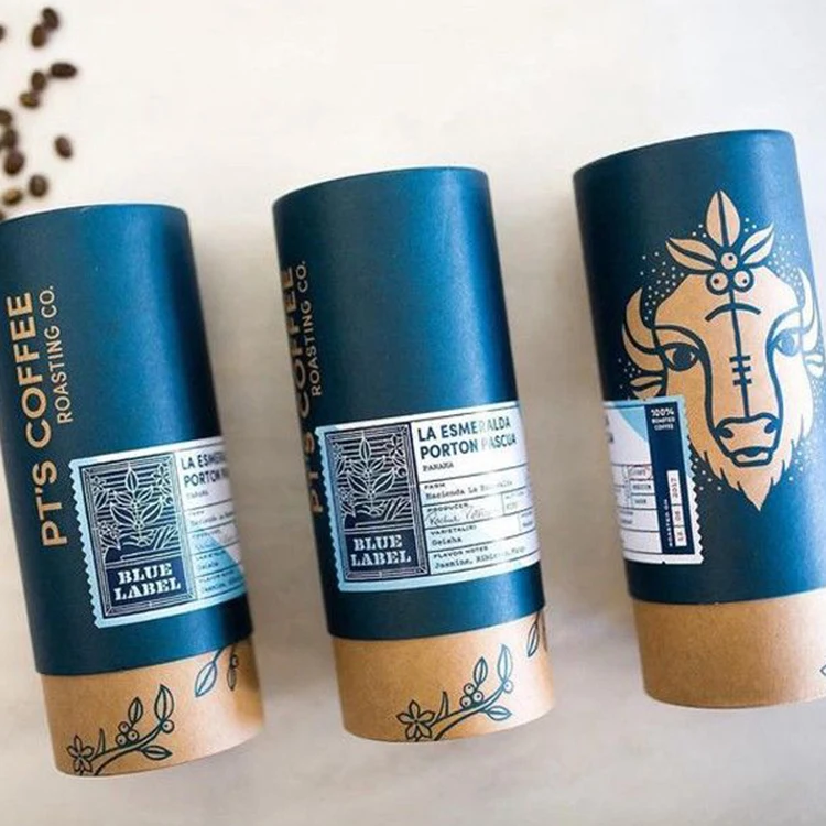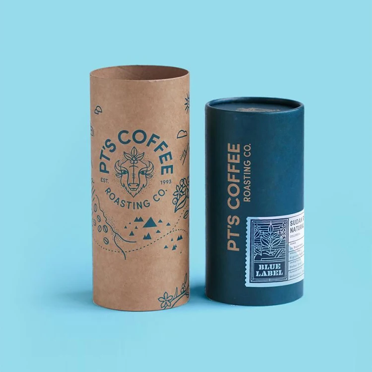 Cylinder 250G Coffee Beans Powder Kraft Packaging Paper Tubes With Custom Metal Lip