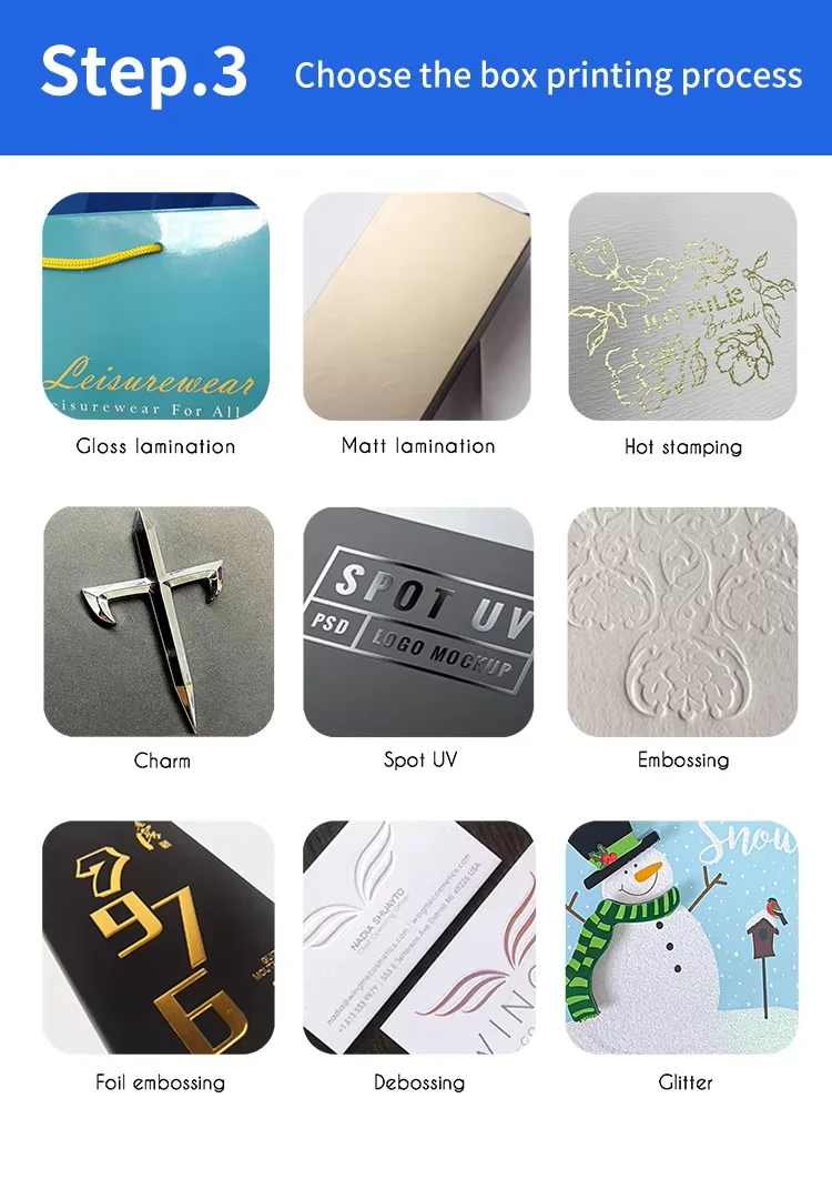 CMYK printing, Spot printing,UV printing, Embossing, 3D printing