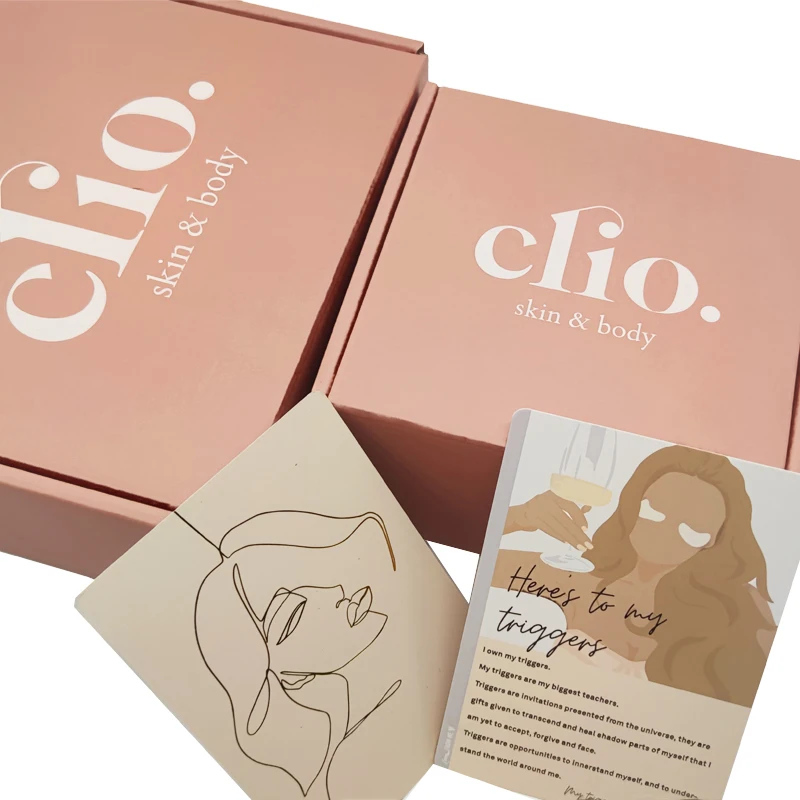 paper box + paper bag + tissue papper + mailer bag + stick label + paper card