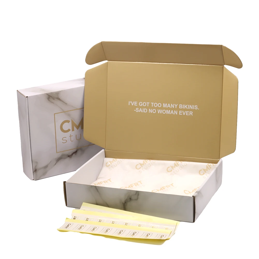 paper box + paper bag + tissue papper + mailer bag + stick label + paper card