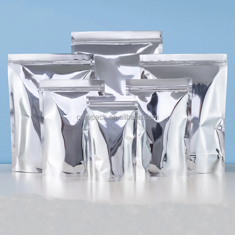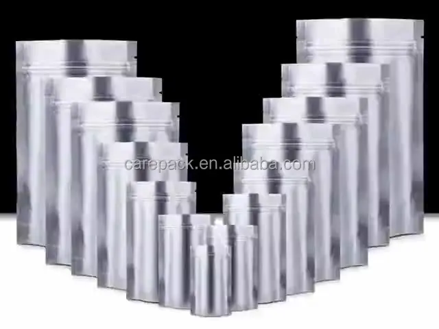 Stand Up Pure Aluminum Foil Mylar Silver Resealable Zipper Ziplock Food Packaging Storage Doypack Bags Pouches