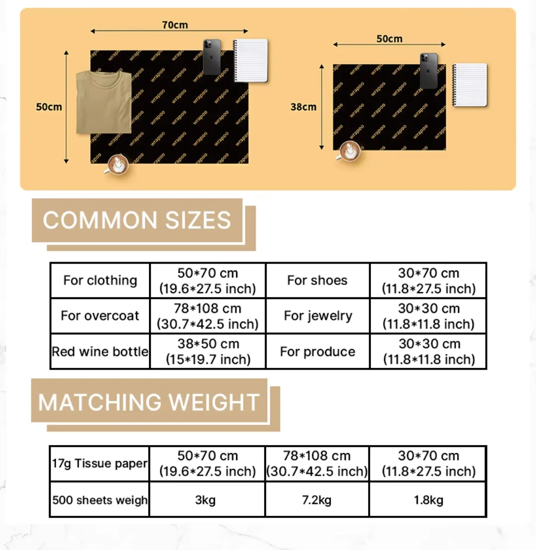 OEM Custom Packaging Paper Tissue Wrapping Paper for Products Clothes Wrap with Company Name
