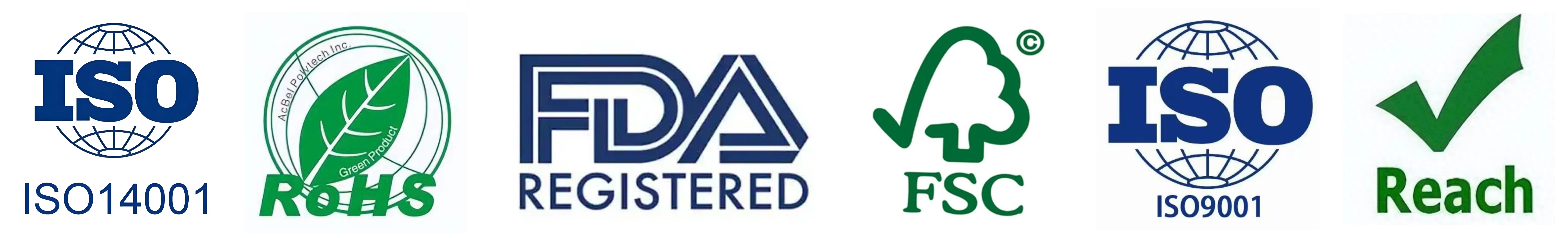 We offer FSC-certified paper, degradable plastics (PLA), recycled pulp and other environmentally friendly materials, which meet