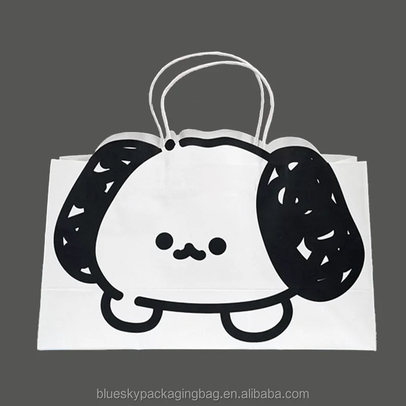 OEM/ODM Customized Cute Cartoon Paper Bag Logo Print Gift Shopping Bag with Handle White Kraft Paper Bags Thick Tote Bag