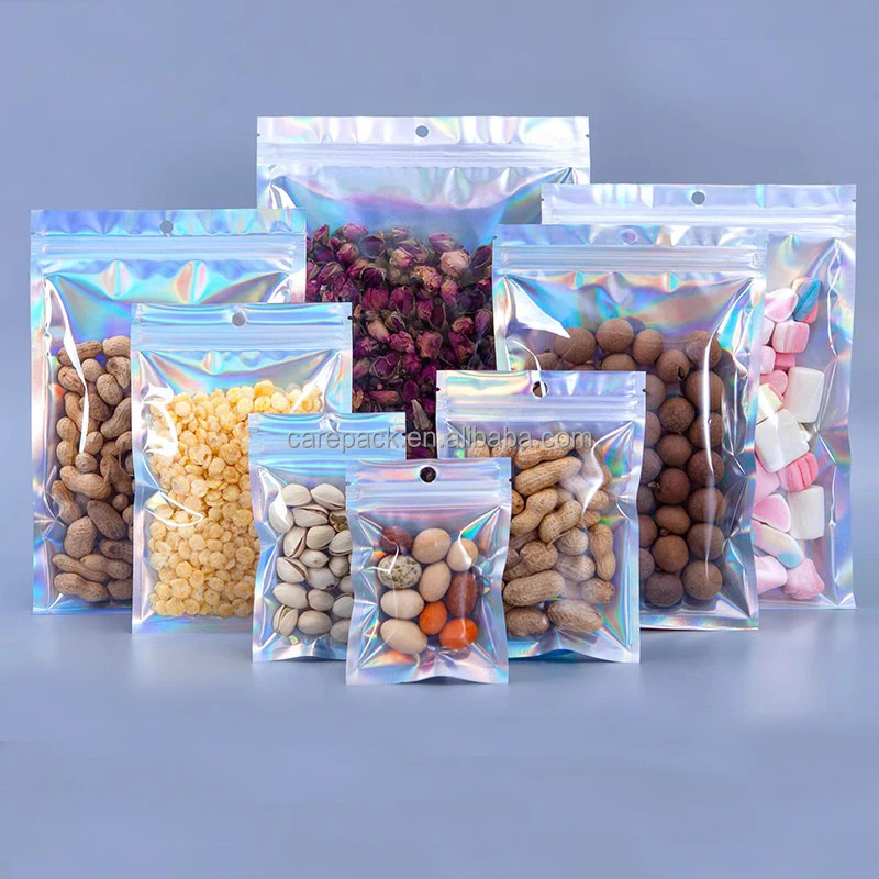 One Side Clear Front Silver Back Resealable Ziplock Food Storage Tear Notch Metallic Aluminum Foil Bag For Food Packaging