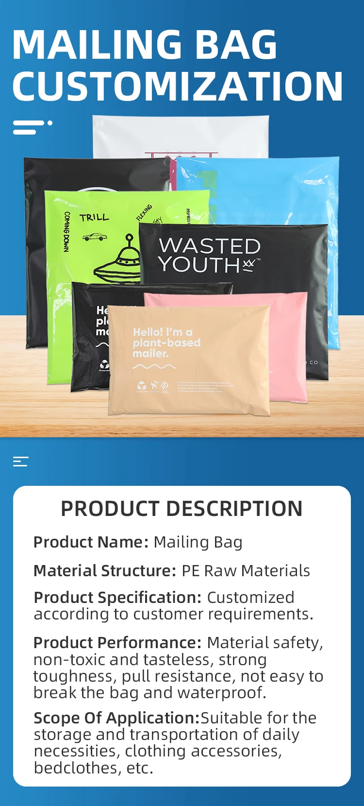 Poly mailers are a popular option with many businesses for shipping lighter and non-fragile items. Poly mailers are afFordable, lightweight, weatherproof, and Durable. customize your mailers with drawings or stickers. Poly mailers are Perfect for shipping a wide variety of items, especially fabrics and apparel. Poly mailers are a great way to cut shipping costs and boost efficiency, thereby improving your botTom line. Let us help your grow your business.