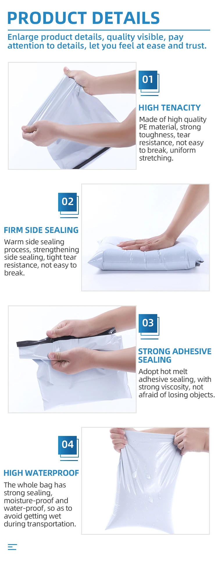 Our poly mailers are crafted with only the finest materials. Ship your packages confidently with our Strong and Durable poly mailers. Each mailer is equipped with a Strong self-sealing adhesive strip that is tamper-resistant and tamper-evident. These poly mailers are tear-resistant, puncture-resistant, waterproof, and opaque to protect your confidentiality. You can count on our poly mailers to keep your packages safe until they reach their destination.