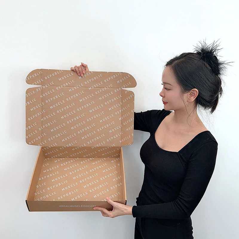 Wholesale Custom logo Kraft Corrugated Post Clothing Product Packaging Dress Gift Boxes With Logo And Gift Card