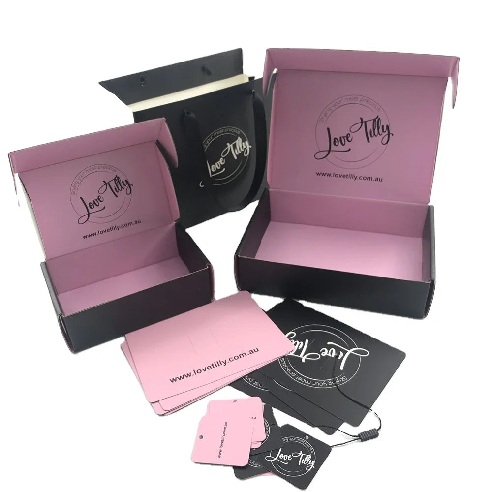 Wholesale High Quality Custom Size Corrugated Cardboard Box Black and Pink Cosmetic Set Postal mailing Box for cosmetic