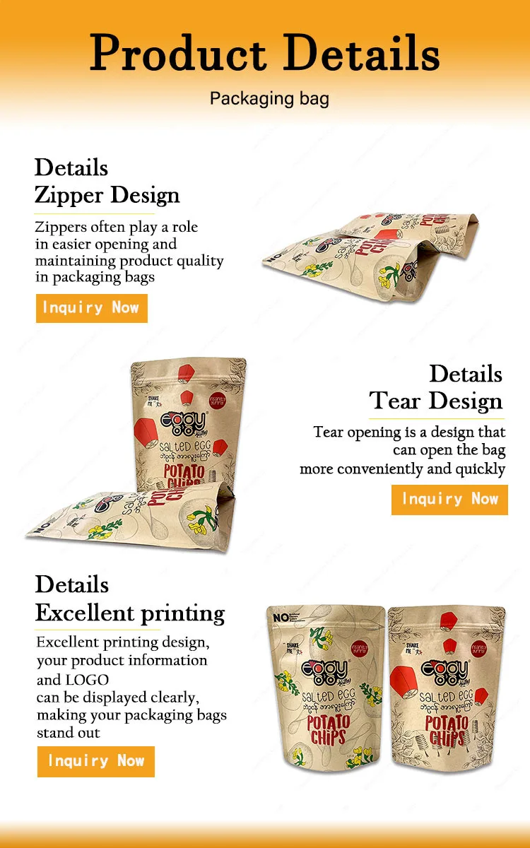 Wholesale Recyclable Kraft Stand Up Pouch For Storing Nuts Heat Seal Food Grade Kraft Doypack Packaging Pouch Bag With Zipper